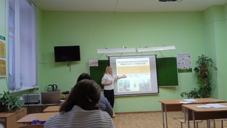 Знакомство началось с приветствий и выступлений административной команды школы: О.Н. Сагдиевой, и.о. директора, Е.В. Хомяковой, заместителя директора по учебно-воспитательной работе. О современных подходах к профориентации обучающихся гости могли узнать из стендового доклада, подготовленного учителями Бабиной Н.А. и Шадриной Е.С. Присутствующие на семинаре учителя труда школ имели возможность на выбор посетить серию открытых уроков и воспитательных занятий: