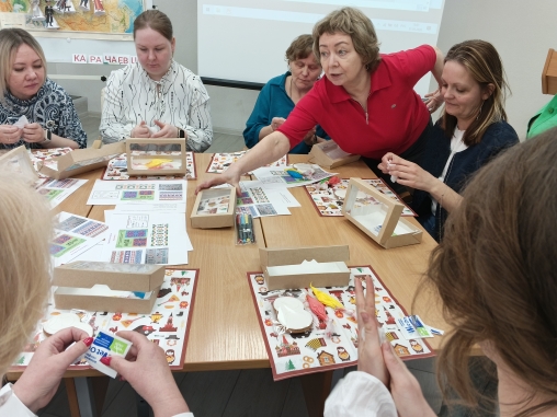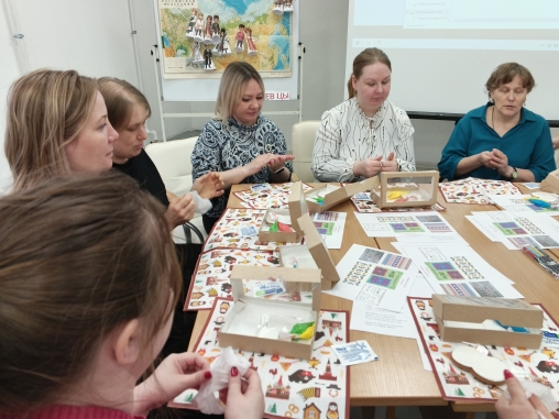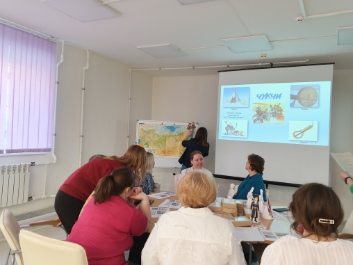 Участники встречи активно помогали педагогам-мастерам, участвуя в квестах, играх, танцах, разрабатывая мини-проекты, подпевая национальные песни.
